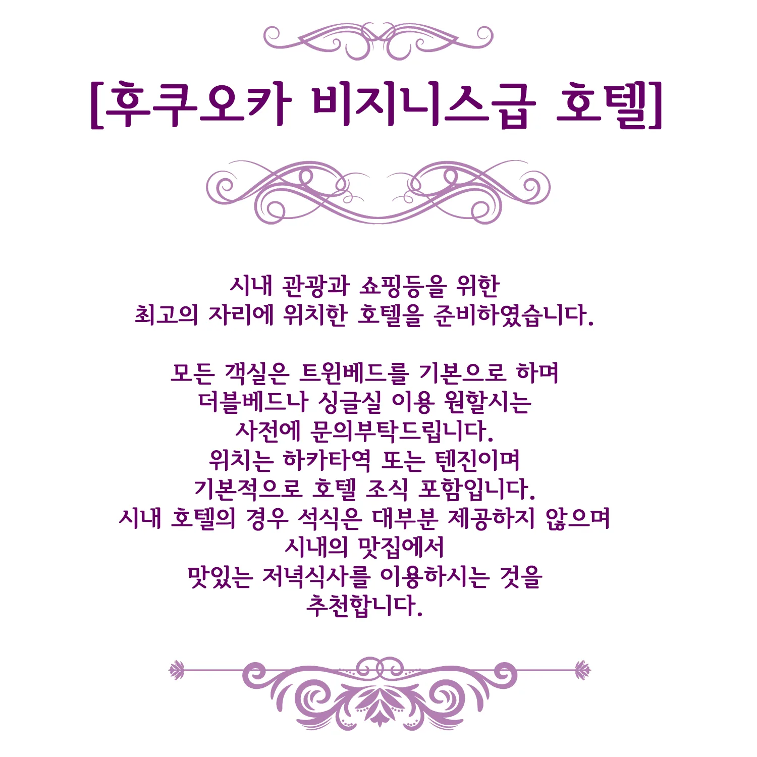 하카타역 또는 텐진주변 비지니스급 호텔이며